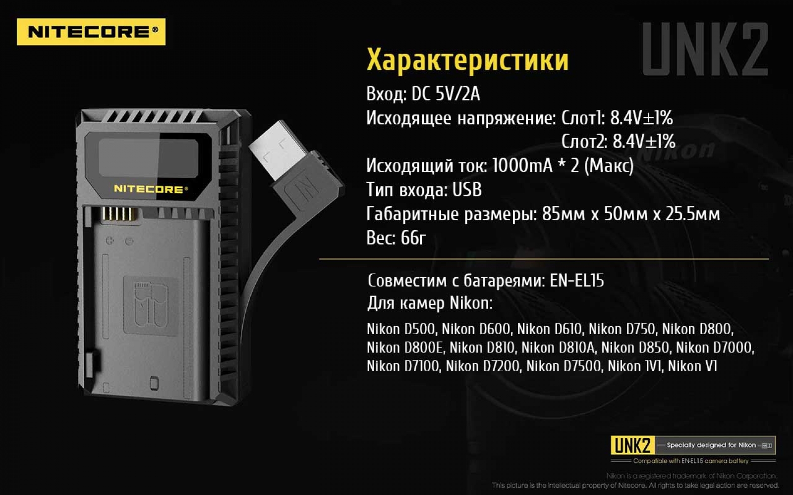 Зарядное устройство NITECORE UNK2 (арт. 18960)